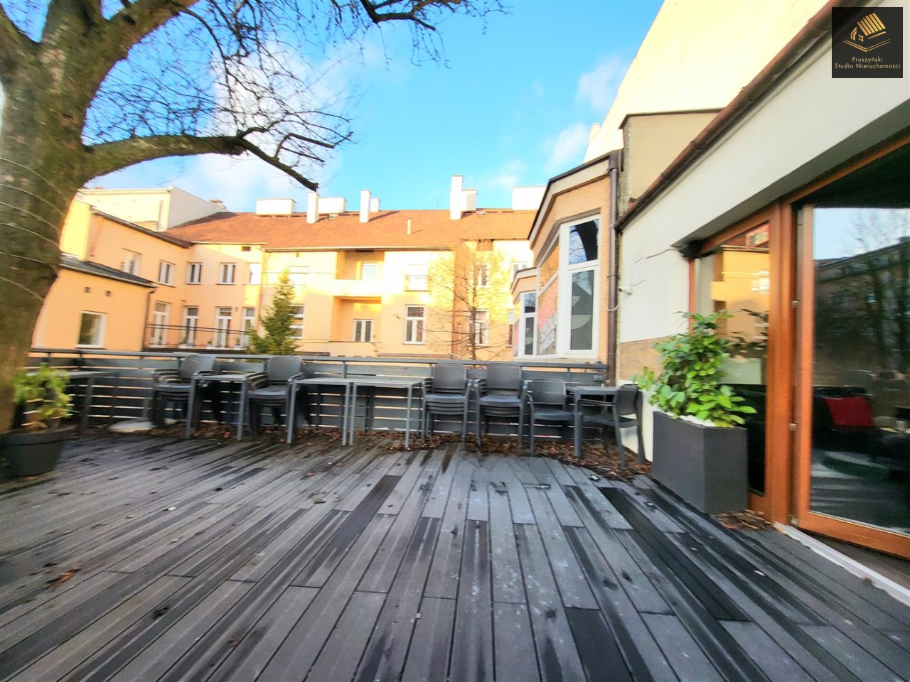 Ten dwupoziomowy lokal przeszedł kompleksowy remont, obejmujący zarówno wnętrze, jak i taras na piętrze. Na łączną powierzchnię ok. 85 m² składa się ok. 50 m² lokalu wewnątrz, oraz zabudowany i ogrzewany