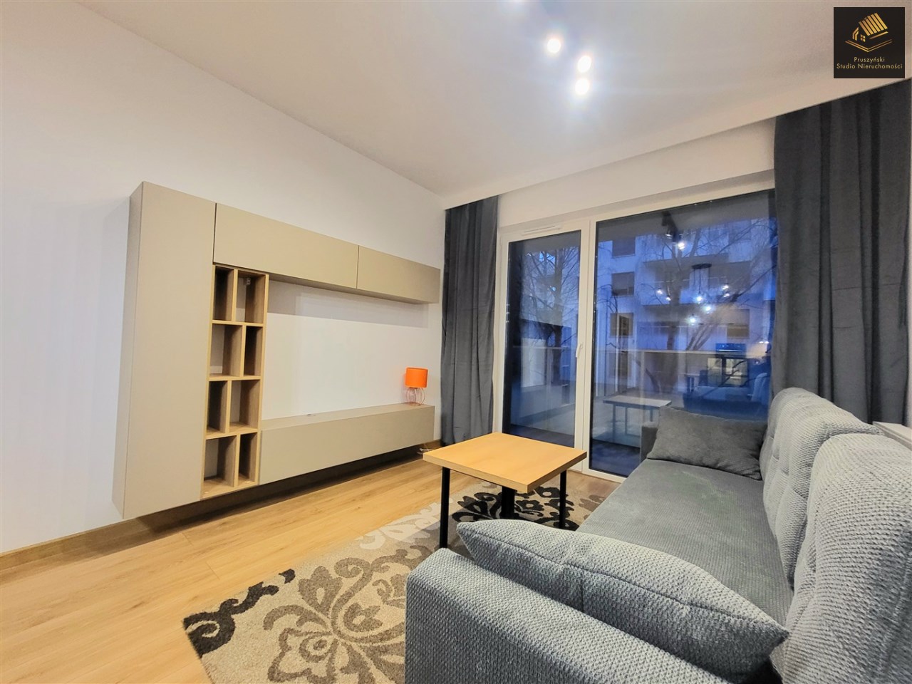 – salon z wyjściem na duży balkon, komplet wypoczynkowy, meble RTV